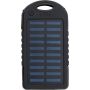 Gumírozott ABS napelemes powerbank zöld jelzőfénnyel és oldalsó elemlámpával. Két USB és egy USB-C porttal. Napelemes töltés: 5V/200mA. Input DC 5V/1A. Output DC 5V/2x1A. Kapacitás: 4.000mAh. USB kábellel.