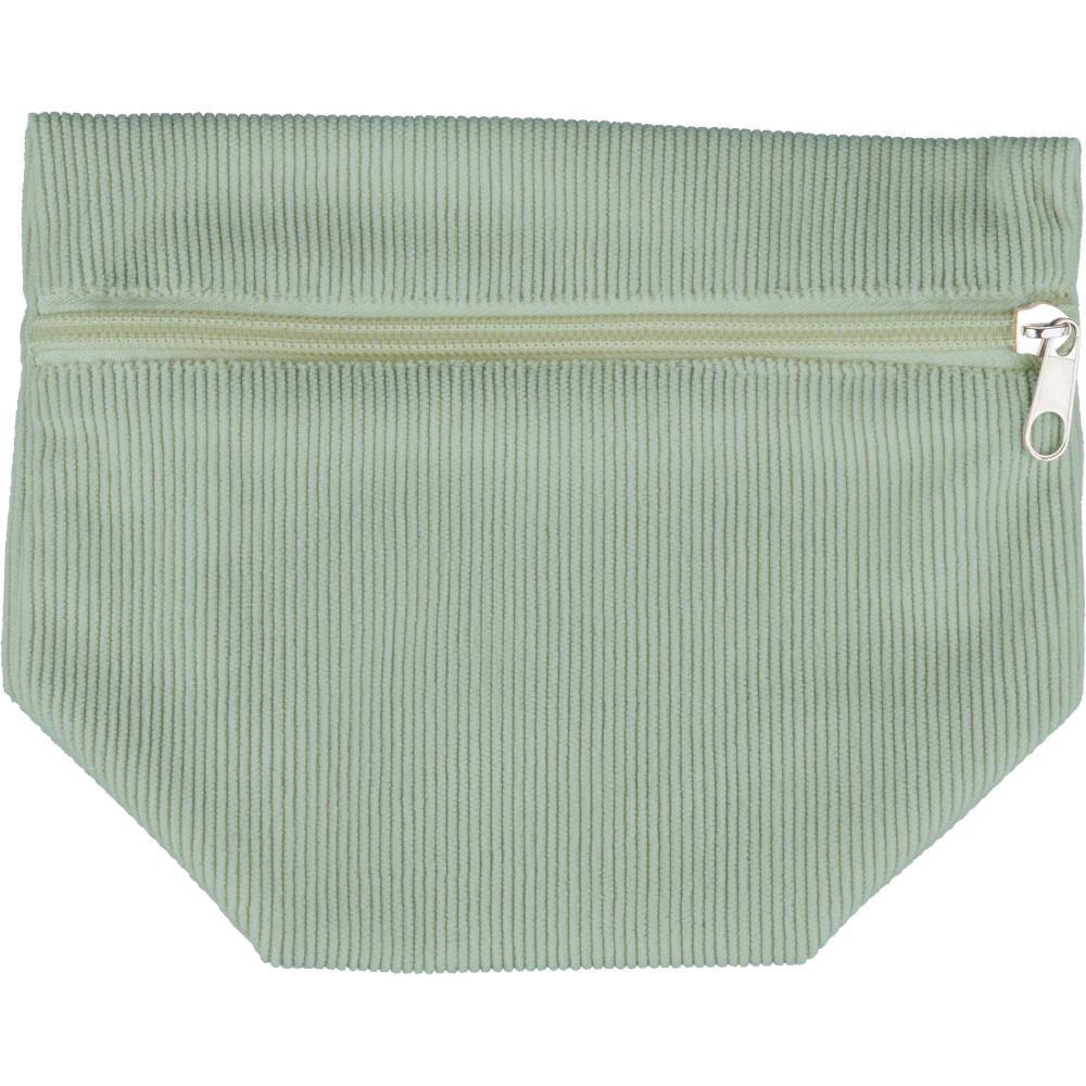 Kordbársony anyagból készült cipzáras kozmetikai táska egy fő rekesszel és biztonságos cipzáras zárással.