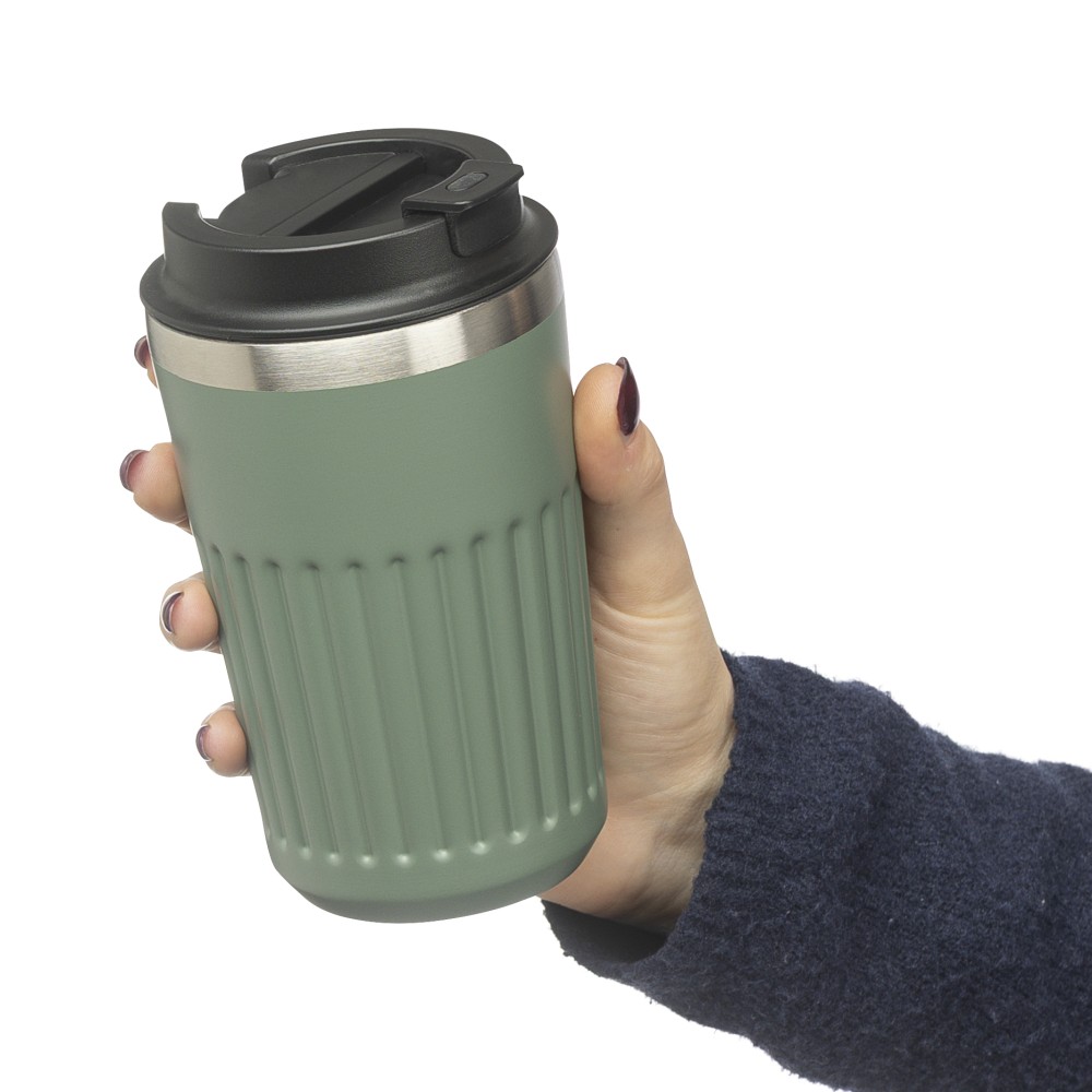 Duplafalú újraacél utazópohár, 400 ml, zöld