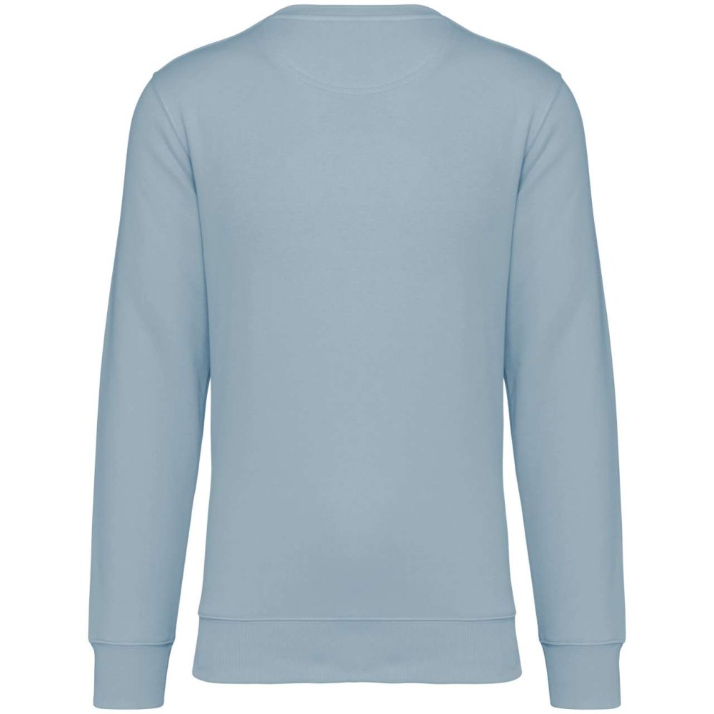 85 % bio, fésült pamutból és 15 % újrahasznosított poliészterből készült. Unisex. Egyenes szabás. LSF (Low Shrinkage Fleece: előzsugorított polár). Kerek nyakkivágás. Félhold alakú. Méretcímke organikus pamut és újrahasznosított poliészter logóval. 1x1 bordás nyakpasszé, alsó szegély és kézelő. Duplaöltés a kézelőn, karöltőben és kézelőn. Egyszeres felülvarrás a nyakkivágáson. Belső szalagozott nyakrész. A nyakrészen nincs márkajelzés, csak méretcímke a könnyebb dekorálás érdekében. A ruhadarabhoz kartonpapírból készült ismertetővel, amely felsorolja a felhasznált környezetbarát anyagokat. OEKO-TEX N CQ1007/7 STANDARD 100 tanúsítvánnyal rendelkezik. IFTH. 350 g/m2.